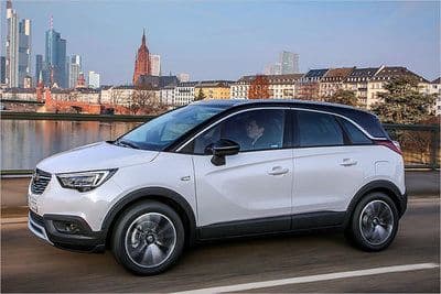 Gebrauchte Opel Crossland X sind überaus schicke Kompakt-SUVs, die gut nach Österreich passen, wie das Bild beweist, auch wenn dieses bei unserem nördlichen Nachbarn in Frankfurt aufgenommen worden ist.