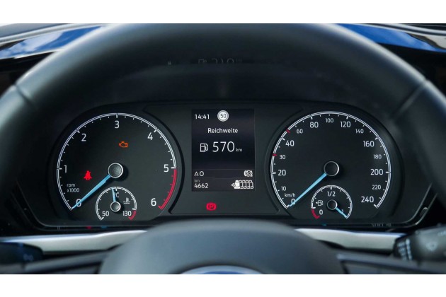 Im Innenraum merkt man natürlich auch die Verwandtschaft zum Bruder aus Hannover, was aber nicht weiter verwerflich ist. Die Zeiger der analogen Instrumente (ein digitales Cockpit ist gegen Aufpreis erhältlich) sind im Ford-typischen hellblau gehalten, ebenso die Ziernähte der Sitze sowie einige auflockernde Farbelemente auf den Stoffbezügen. Ein nettes Gimmick im Tourneo Connect ist die zweigeteilte Ablage vor dem Gangschalter: Unten ein Fach für das Smartphone mit Wireless-Charging-Funktion, darüber eine Ablage für die Geldbörse oder Ähnliches.