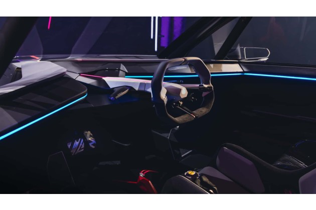 Die Insassen nehmen auf Carbon-Schalensitzen Platz, das pfeilförmige Design des Armaturenbretts ist von der Nase der Formel-1-Wagen inspiriert. Dazu gibt es ein eckiges Lenkrad.