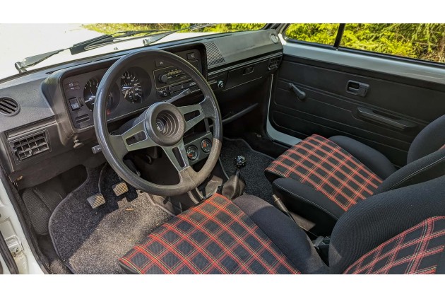 Aber selbst er ist nicht so übersichtlich wie der kastige Golf mit seinen großen Fensterflächen. Der rechte Außenspiegel fehlt? Kein Problem, ein kurzer Schulterblick verrät alles. Und obwohl dieses Auto das damalige Topmodell darstellte, ist die Bedienung simpel. Die typischen Sitze mit Schottenkaro und der Golfball-Schaltknauf sind natürlich mit an Bord.