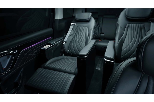 In der zweiten Reihe gibt es ein durchaus luxuriöses Ambiente mit serienmäßigen Einzelsitzen, die je nach Ausstattungspaket auch Annehmlichkeiten wie eine Massagefunktion, Sitzheizung und -belüftung bieten. Seitliche Schiebetüren vereinfachen dabei den Zugang zum Fond.