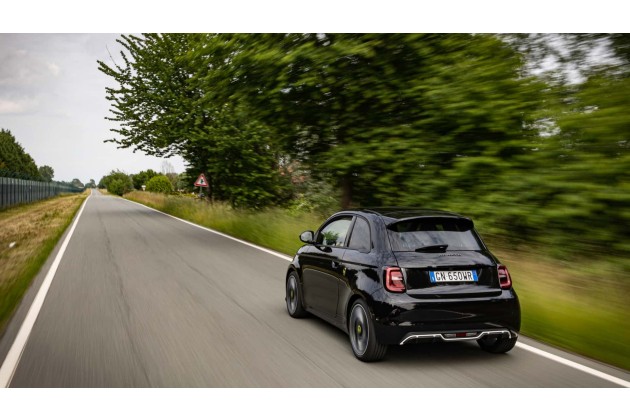 Daneben übernimmt der Abarth auch die 42-kWh-Batterie sowie den Elektromotor des Fiat. Letzterer konnte durch Optimierungen am Inverter und eine neue Kalibrierung sowie eine geänderte Getriebeabstufung (mehr Drehmoment am Rad) auf 155 PS leistungsgesteigert werden. Das maximale Drehmoment beträgt nun 235 Nm.