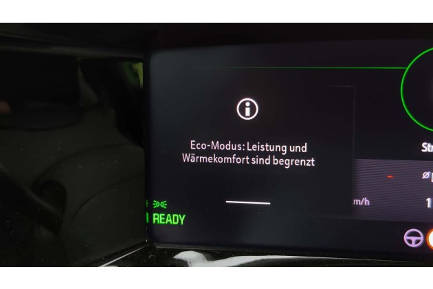 Der Fahrer kann zwischen verschiedenen Fahrmodi wählen. Dabei wird die Leistung dem Modus angepasst, nur im Sport-Modus steht die volle Leistung zur Verfügung. Kein Wunder also, dass die Leistungsentfaltung je nach Modus recht unterschiedlich ausfällt. Den besten Kompromiss zwischen Reichweite und Fahrspaß bietet der normale Fahrmodus. Hier wirkt der Mokka spritzig genug, um auch Überholmanöver souverän zu meistern und jeden Ampelsprint gegen Fahrzeuge mit Verbrennungsmotor locker zu gewinnen.