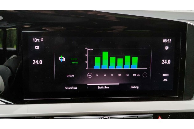 Selbst an Ladestationen mit theoretisch hoher Leistung kann es länger dauern, bis die empfohlenen 80 Prozent der maximal möglichen Batteriekapazität erreicht sind. Um die Batterie von 20 auf 80 Prozent zu laden, benötigten wir in der Regel etwa 30 bis 40 Minuten.