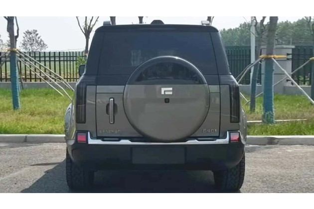 Auch am Heck des BAIC Stone 01 sind viele Ähnlichkeiten mit dem Land Rover Defender zu erkennen: ein großer, verkleideter Radträger (beim Chinesen leicht versetzt), eine horizontal öffnende Heckklappe und ein großer vertikaler Griff. Lediglich die Beleuchtungseinheiten unterscheiden die beiden Modelle etwas voneinander.