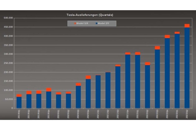 In den ersten drei Monaten des laufenden Jahres wurden 422.000 Autos ausgeliefert und 440.000 gebaut. Noch deutlicher ist der Abstand zum Vorjahresquartal (also dem 2. Quartal 2022). Damals waren es nur 254.695 Auslieferungen gewesen - die schwachen Zahlen waren damals allerdings durch die Corona-Krise und die Produktionsstillstände im wichtigen Werk in Shanghai bedingt.