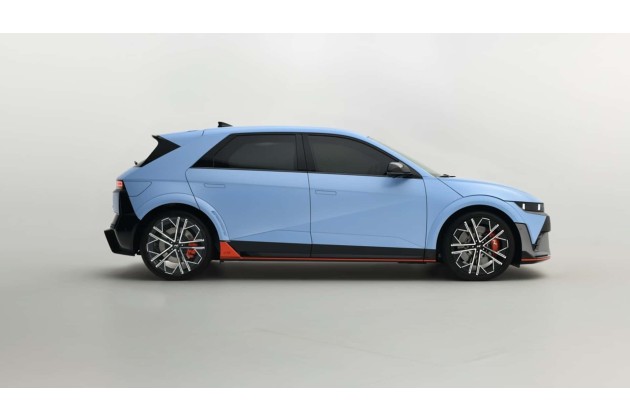 Auch wenn der Ioniq 5 N in zehn Außenfarben erhältlich sein wird, ist der Farbton Performance Blue wahrscheinlich erste Wahl. Ihn gibt es exklusiv in einer glänzenden und in einer matten Ausführung. Akzentuiert wird das N-Modell dann mit Luminous Orange Matte.