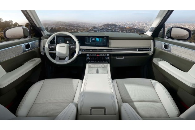 Schaut man sich den 2024er Santa Fe von der Seite an, dann sendet er sicher den ein oder anderen Land Rover Defender 130-Vibe. Im Interieur hat man aber ebenfalls mächtig umstrukturiert. Wir sehen ein Setup mit zwei Curved-Displays und - typisch Hyundai - weiterhin separate Bedienelemente für Klima, Heizung und Co. Der Santa Fe bietet eine Mélange aus guten alten Tasten und Knöpfen und kapazitiven Bedienflächen, um beiden Welten gerecht zu werden.