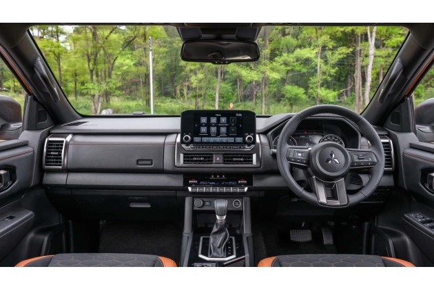 Je nach Konfiguration verfügt der neue Rivale des Ford Ranger über das Super Select 4WD-II- und das Easy Select 4WD-System. Ersteres ist mit einem mittleren Sperrdifferenzial ausgestattet, das 40 Prozent der Kraft auf die Vorderachse und die restlichen 60 Prozent auf die Hinterachse überträgt. Dieses anspruchsvollere Allradsystem verfügt über die folgenden wählbaren Modi: 2H (RWD), 4H (4x4), 4HLc (4x4 mit gesperrtem Mitteldifferenzial) und 4LLc (Low-Range mit gesperrtem Mitteldifferenzial). Darüber hinaus gibt es nicht weniger als sieben Fahrmodi: Normal, Eco, Schotter, Schnee, Schlamm, Sand und Fels.