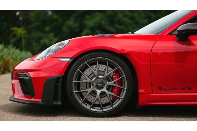 In liebenswert-nerdiger Porsche-Tradition hat man absurde Extra-Runden gedreht, um den ikonischen 9.000-Touren-Sauger im Spyder unterzubringen. Sehen Sie die Lufteinlässe auf den Schultern des Autos? Die hat auch der GT4 RS. Warum? Weil die GT3-Maschine deutlich mehr Frischluft benötigt als der ebenfalls 4,0 Liter große Motor im "normalen" GT4 und Spyder.