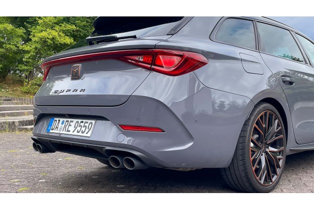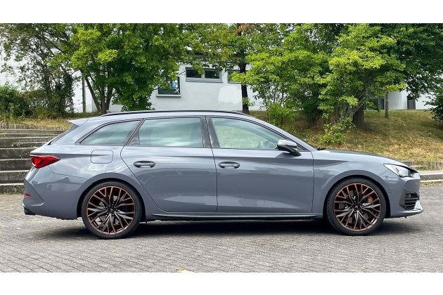 Darüber hinaus sieht so ein Ende-der-Nahrungskette-Cupra Leon Sportstourer ja auch schon im Stand irgendwie schneller aus als die Pendants von Seat mit 150-PS-Diesel und Schaltgetriebe. Dazu bei trägt das tiefergelegte Sportfahrwerk mit DCC-Regelung, die veränderten Schürzen vorne und hinten, die zahlreichen Aero-Anbauten und - so wünscht sich das der Hersteller - die kupferfarbenen Akzente, die ringsum das Auto verteilt werden.