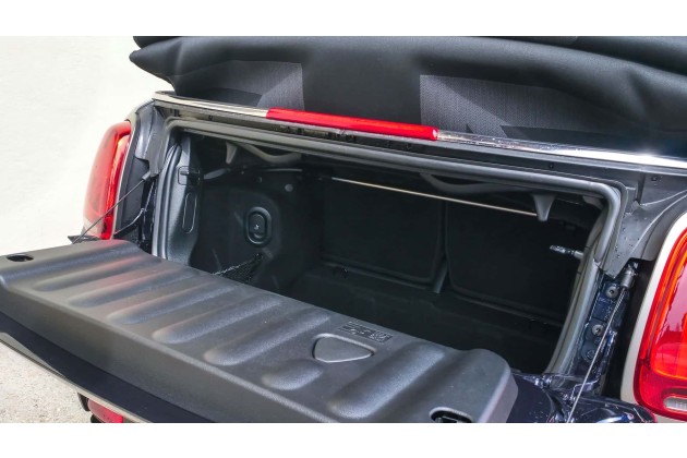 Da wir uns gerade im Läster-Modus befinden: Beim Platzangebot macht der Mini seinem Namen alle Ehre. Das hinten abgelegte Stoffverdeck verschwindet nicht unter einer Abdeckung, womit es zwar als eine Art Windabweiser dient, aber zugleich neigt die fragile Konstruktion auch zum "Knittern".