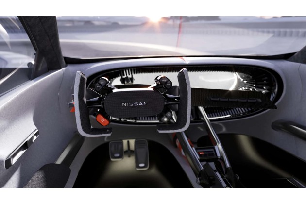 Das Steuer sieht einer Spielekonsole ähnlicher als einem Lenkrad. Wie im Rennsport üblich, ist es mit zahlreichen Bedienelementen und Einstellmöglichkeiten besetzt. Paddles und weitere Schalter befinden sich dahinter. Ein Display haben wir auf den Bildern nicht entdecken können.