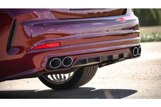Die Lösung: BMW Alpina B4 Gran Coupé. Dieses Fahrzeug trägt den Nerz nach innen. Gut, für die XXL-Niere kann Alpina nichts. Ein dezenter Frontspoiler akzentuiert die Frontansicht, hinten gibt es eine Sportabgasanlage mit vier ovalen Endrohren. Doch selbst der typische goldfarbene Zierstreifen fehlte bei unserem Testwagen. Alpina-Fans können aber beruhigt sein: Es gibt ihn.