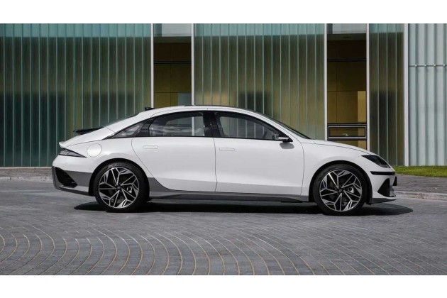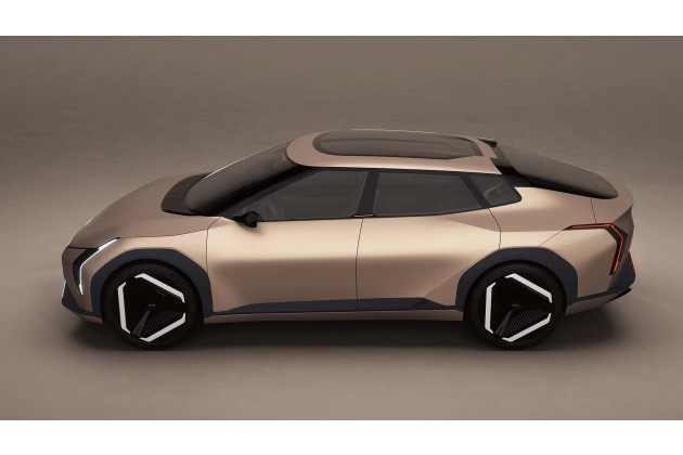 Seitlich wirkt das Auto deutlich gestreckter als der EV6; die Höhe soll geringer als beim EV6 sein, aber nicht viel niedriger. Dazu kommt noch eine beträchtliche Bodenfreiheit ähnlich wie bei einem SUV. "Das ist keine niedrige Limousine, wie wir sie heute kennen", sagte Kia-Chefdesigner Karim Habib gegenüber InsideEVs.com. "Wir wollen einen Weg finden, in Zukunft niedrigere, schlankere Fahrzeuge zu erhalten, nicht nur vom Design her, sondern auch im Hinblick auf den Nutzwert."