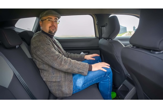 Weiter zu den Rücksitzen. Etwas unpraktisch ist der Klapptürgriff am Fenster. Der Wechsel auf die CMF-B-Plattform von Sandero und Jogger hat laut Dacia im Innenraum mehr Platz geschaffen - vor allem vorne in der Breite und hinten bei der Beinfreiheit. Sagen wir mal so: Zum Skoda Kodiaq wird der Duster nicht, doch der Platz für die Haxen ist auch für 1,88 Meter lange Redakteure ausreichend.