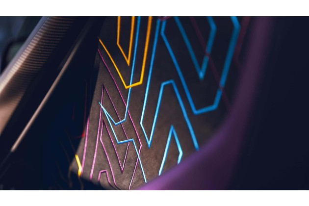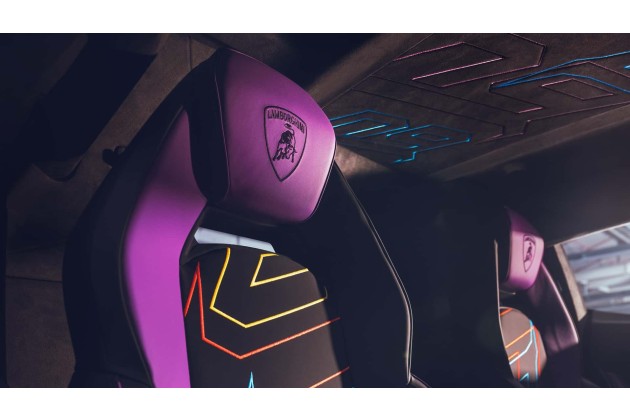 Im Innenraum finden Sie ein zweifarbiges Lederinterieur mit noch mehr Violett und Schwarz - dieses Mal Viola Acutus und Nero Ade -, das ein ähnliches Thema mit Streifen von warmen und kühlen Farben enthält. Im Dachhimmel, in den Türeinlagen und in den Kopfstützen sind Logos zum 60-jährigen Jubiläum eingestickt. Um sicherzugehen, dass unsereiner die Detailgenauigkeit dieses Projekts versteht, erwähnt Lamborghini ausdrücklich die bunten Pinselstriche auf der Start/Stopp-Abdeckung.
