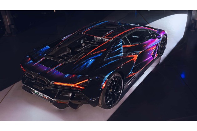 "Wir wollten etwas rein Künstlerisches schaffen, indem wir Pinsel und eine Kombination von Farben verwenden, als ob der Revuelto eine Leinwand wäre", sagt Lamborghini Design Director Mitja Borkert. "Das war unsere Inspiration für diese spezielle Lackierung. Mit dem dynamischen, handbemalten Äußeren betonen wir die Aerodynamik und die Geschwindigkeit des Fahrzeugs."