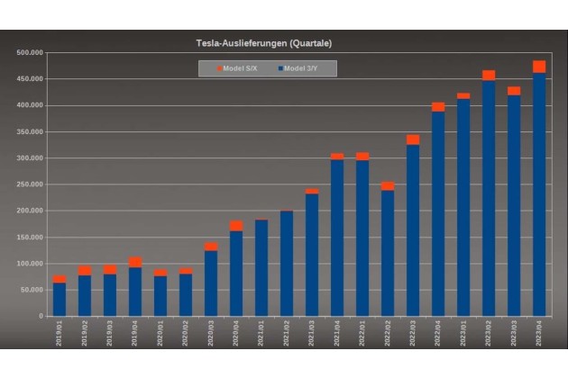 Rund 1,8 Millionen Teslas wurden im Gesamtjahr 2023 an die Kundschaft übergeben, produziert wurden etwa 37.000 Stück mehr. Damit stieg die Zahl der Auslieferungen gegenüber dem letzten Jahr um 38 Prozent. Das meldete der US-Bauer am heutigen Dienstag kurz vor dem Eröffnen des US-Börsenhandels.