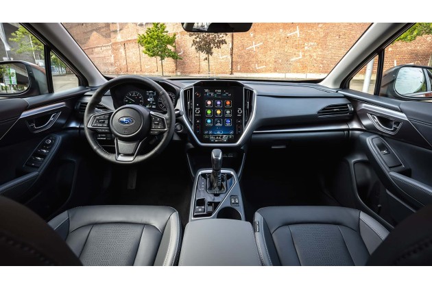 Wechsel nach vorne. Erster Gedanke: Irgendwie altbacken. Zweiter Gedanke: Das ist sehr gut so! Klassische Instrumente, einwandfreie Bedienung, große Schalter, die man sogar mit Handschuhen bedienen kann. Einzige Konzession an die Neuzeit ist der große längs angeordnete Infotainment-Touchscreen im Format 11,6 Zoll. Für serienmäßige Sicherheit sorgen neun Airbags und das erweiterte Eyesight-System, das dank eines größeren Erfassungsbereichs neun neue bzw. verbesserte Funktionen umfasst.
