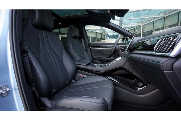 Wer sich für den Design entscheidet, kriegt abgesehen von der größeren Batterie ein Head-up-Display, einen 15,6-Zoll-Infotainmentbildschirm, darunter eine Ladefläche für gleich zwei Smartphones sowie ein Infinity-Soundsystem mit 10 Lautsprechern.