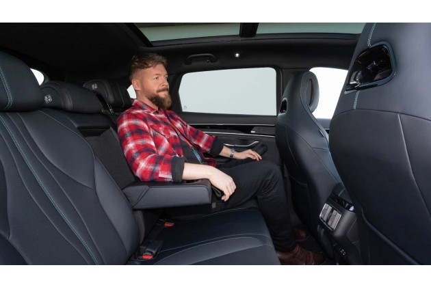 Wie Sie auf dem Bild erkennen können, ist das Platzangebot im Fond mehr als großzügig. Meine 1,85 Meter passen hinter mir selbst locker flockig mit ordentlich Restbeinfreiheit. Die Kopffreiheit ist auch luftig. Schön natürlich: Das monumentale Glasdach. Beim Kofferraumvolumen (552 bis 1.440 Liter) bieten die Konkurrenten teils deutlich mehr.