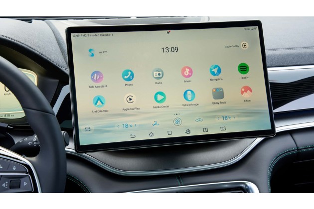 Bei BYD ist es eben das Dreh-Display. Auf Knopfdruck wird horizontal oder vertikal angezeigt, ganz wie Sie wollen. Man kann den Kasten aber auch manuell zurechtstutzen. Was auf selbigem angezeigt wird, macht größtenteils Sinn und ist recht übersichtlich. Hin und wieder brauchte es aber zwei Versuche, bis er in manchen Menüs auf die Berührung reagierte.