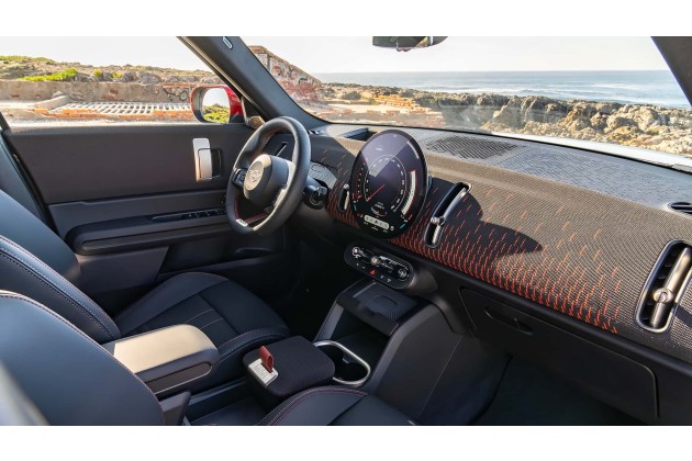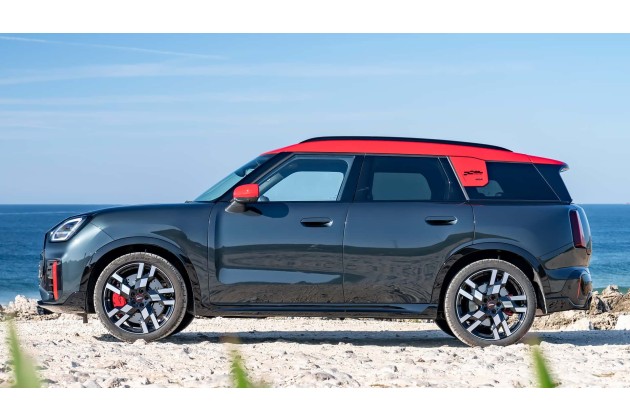 Eigentlich müsste eher "Maxi" am Heck des neuen Mini Countryman stehen. Er teilt sich die Plattform und Technik mit dem BMW X1. Leider auch dessen Format. Im Fall der dritten Countryman-Generation bedeutet das: 4,45 Meter lang, 1,84 Meter breit, 1,65 Meter hoch. sowie 1.660 Kilogramm Leergewicht beim JCW.