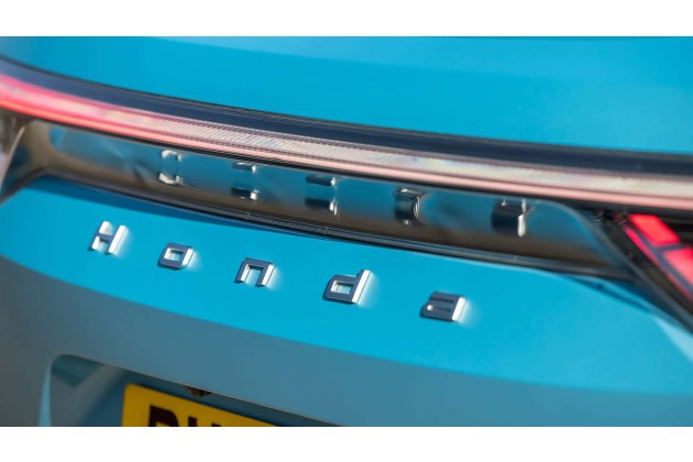 Auch die Frontpartie ändert sich: Der offene Kühlergrill des HR-V wird durch eine geschlossene Abdeckung der Steckdose ersetzt, die sich damit in einer bequemen Position für den Anschluss an die Ladestationen befindet. Direkt darüber befinden sich zwischen den Scheinwerfern Kontrollleuchten, die beispielsweise den Ladezustand der Batterie anzuzeigen. Weitere spezifische Komponenten des e:Ny1 sind die Scheinwerfer, Stoßfänger, Seitenschweller und die 18-Zoll-Leichtmetallfelgen. Außerdem spendiert der Hersteller einen ausladenden "HONDA"-Schriftzug auf der Heckklappe. Fertig.