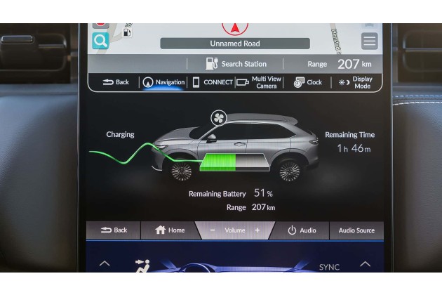 Bei Wechselstrom (AC) erreicht der Honda e:Ny1 eine Ladeleistung von 11 kW und bei Gleichstrom (DC) sind es bis zu 78 kW, wobei er in 45 Minuten von 10 % auf 80 % des Batteriestands kommt (was die Reichweite alle 11 Minuten um 100 km erhöht). Nicht gerade zügig. Aber laut Hersteller schonend für die Batterie und damit gut für die Lebensdauer.
