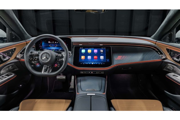 Innen gibt es ein durchleuchtetes Zierteil in Holz Esche grau offenporig, das nur der E 53 hat. Optional ist der MBUX-Superscreen mit Beifahrermonitor erhältlich. MBUX selbst bietet AMG-spezifische Anzeigen und Features sowie die zusätzlichen Menüinhalte AMG Performance und AMG Track Pace (optional). Hinzu kommen die Hybrid-spezifischen Anzeigen und Funktionen. Serienmäßig sind elektrisch verstellbare AMG Sportsitze an Bord. Der AMG-Performance-Sitz ist gegen Aufpreis zu haben.