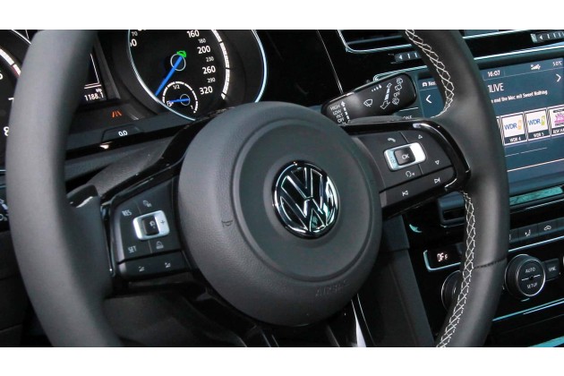Auf der linken Speiche werden die kaum wahrnehmbaren, berührungsempfindlichen, kapazitiven Bedienelemente unter einer integrierten Kunststoffoberfläche (bei einigen Ausstattungen) für Tempomat, Spurhaltung und Lautstärke durch traditionellere separate Tasten ersetzt.
