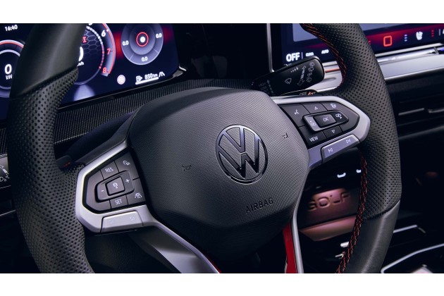 Das Gleiche geschieht auf der rechten Seite, wo sich die bekannten Volkswagen Bedienelemente für Infotainment, Kombiinstrument, beheiztes Lenkrad und Sprachsteuerung befinden, jetzt aber mit "echten" Tasten und Wippen.