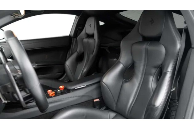 Schön anzuschauen ist die gedrosselte Entwicklungsversion des Ferrari F12 TDF dennoch. Von der schwarzen Lackierung heben sich weiße Startnummernaufkleber ab. Mit den Sportsitzen und der Lederausstattung macht der Italiener noch immer eine potente Figur. Das Äußere erzählt von einer wilden Vergangenheit, die vergangen scheint sobald die markante 24-km/h-Marke erreicht ist.