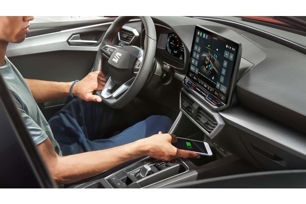 Im Innenraum setzt der Leon auf Digitalisierung mit einer neuen und verbesserten Mensch-Maschine-Schnittstelle (HMI), die sowohl im digitalen Cockpit (10,25 Zoll) hinter dem Lenkrad als auch im größeren 10,4-Zoll-Standard-Infotainmentsystem (bisher: 8,25 Zoll) oder dem optionalen 12,9-Zoll-Infotainmentsystem, beide mit einem endlich beleuchteten Slider, implementiert ist. Der Aufbau und die Bedienung des Touchscreens sollen nun logischer sein als bislang. Hinzu kommt eine kabellose Schnelllademöglichkeit mit bis zu 15 Watt und Kühltechnologie.