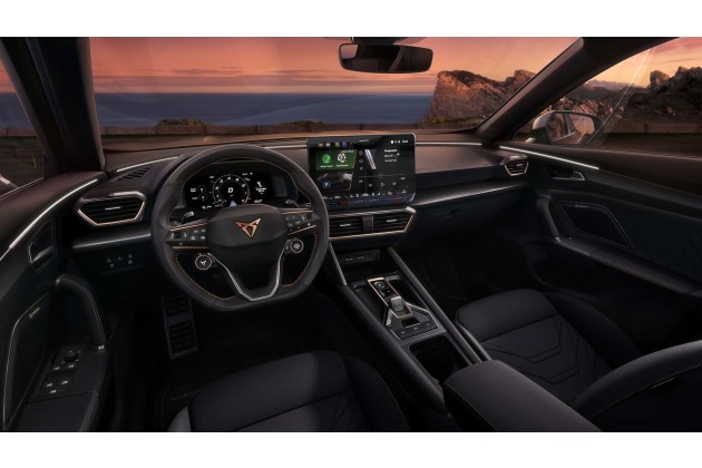 An Bord des Formentor ist die Qualität der Polsterung weiterhin hoch. Sie besteht aus verschiedenen Formteilen, die im 3D-Druckverfahren hergestellt werden und zu 73 Prozent aus recycelter veganer Mikrofaser bestehen. Zu den wichtigsten Neuerungen gehören die optionalen "CUPBucket"-Sitze (die gleichen wie in der VZ5-Version) für die VZ-Versionen sowie schwarze Einsätze am Lenkrad, an den Lüftungsdüsen der Klimaanlage und an der Mittelkonsole.