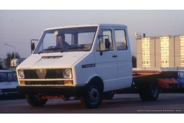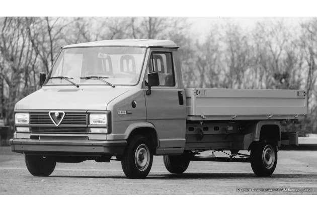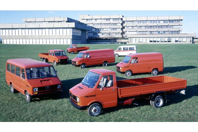 Zum Nachfolger dieser Transporter-Baureihe werden zwei Fahrzeuge, die beim Betrachter spontan Erstaunen hervorrufen: ein Fiat Ducato und ein Iveco Daily mit Alfa-Scudetto im Grill. Da muss doch Photoshop im Spiel sein! Niemals gab es sowas! Doch. Aber nur in Italien.
