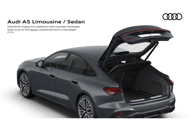 Audi formuliert das Ganze dann so "Bei der Limousine läuft das sportlich kompakt wirkende Greenhouse mit einem schwungvoll gezeichneten Bogen nach hinten, fließt wie bei einem Coupé übergangslos in die flache Heckscheibe und endet an der optisch kurzen Heckklappe mit einer markanten Abrisskante."