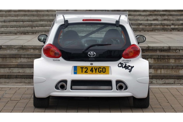 Hinzu kommen auffällige Aygo Crazy-Aufkleber und das T2 4YGO-Nummernschild (Aygo mit Turbolader und zwei Sitzen). Toyota UK sagt voller Überschwang damals, man wolle beweisen, dass dieser Aygo zwar verrückt sein mag, aber ein unvergesslicher Wahnsinn ist.
