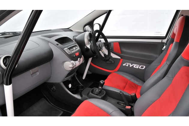 Der Aygo Crazy, der eher dem Geist des Gruppe-B-Rallyesports als dem des D1-Driftsports entspringt, ist ein Auto, bei dem die Freude am Fahren im Vordergrund steht: Ohne elektronische Fahrhilfen, ohne Servolenkung und ohne ABS ist er wie ein Kart mit Türen und Dach.