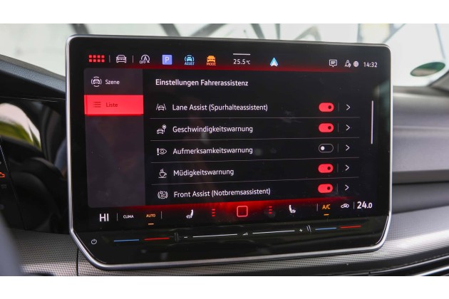 In unserem Fahrzeug war der zum 1.645 Euro teuren Komfortpaket zählende Travel Assist inklusive Lane Assist an Bord. Während die Spurführung sehr gut funktionierte, konnte uns der Abstandsassistent vor allem im Stop&Go überhaut nicht überzeugen. Das Anhalten geschah meist sehr ruppig, unabhängig vom Fahrmodus. Das ging bei VW schon mal deutlich besser, wie zuletzt im aktuellen Passat-Testwagen.