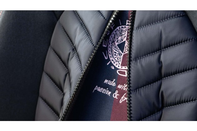 Beschleunigt wird mit dem "FIRE"-Logo - gebremst mit dem Tritt auf das "ICE"-Logo. Auch das Oberteil der Instrumententafel sowie die Fußmatten wurden mit einem gelaserten "FIRE+ICE"-Muster individualisiert. Inspiriert aus den Bogner FIRE+ICE Kollektionen wurden zahlreiche Farben, Stoffe und Elemente verwendet. Die Sitze sind gesteppt und spiegeln das Design aktueller FIRE+ICE-Daunenjacken inklusive der ikonischen B-Reißverschlüsse wider. Wenn man diese bei den Sitzen öffnet, erscheint darunter der Original-Stoff aus den 1990er Jahren. Hinter den vorderen Sitzen wurden zudem Gurtbänder von Taschen aus der FIRE+ICE-Kollektion verwendet.