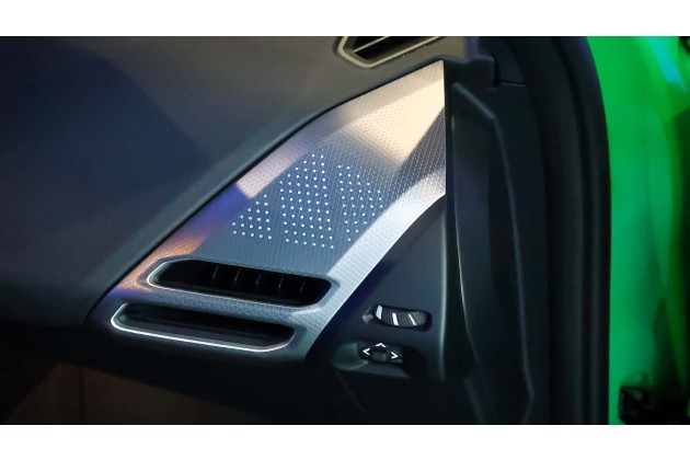 Die Materialanmutung ist größtenteils sehr ansehnlich. Speziell bei den Alu-Designelementen gab man sich größte Mühe. Die hinterleuchteten Blenden sind in einem aufwendigen Prozess tiefgezogen und gefräst und sehen sehr edel aus. Die vielfarbige Ambientebeleuchtung wird so perfekt in Szene gesetzt. Auch die dreifarbige Ziernaht auf dem Armaturenbrett wird aufwendig in Handarbeit (!) aufgebracht.