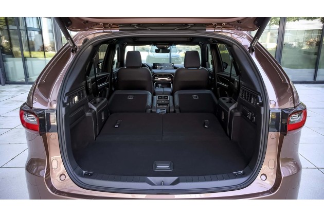 Viel Lob verdient auch, dass Mazda vortrefflich verstanden hat, wie Familien-Reise-Auto funktioniert. In allen vier Türen gibt es genügend Raum für große Flaschen, dazu auch in der dritten Reihe eigene Cupholder. Außerdem gibt es USB-C-Buchsen auf allen Plätzen. Dazu ganz hinten eine 12-Volt- und an der Mittelkonsole eine 230-Volt-Steckdose. Nur beim PHEV ist zudem eine 1.500 Watt 230-Volt-Wechselstromsteckdose im Kofferraum zu haben, über die bei stehendem Fahrzeug auch größere Elektrogeräte betrieben werden können.