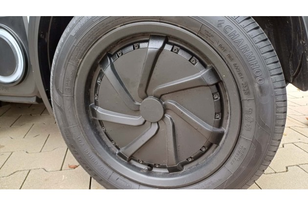 Wie der Ladeanschluss verblüffte mich auch der Antrieb: Das Wägelchen hat Radnabenmotoren! Das ist der Grund dafür, dass die Hinterräder so seltsam aussehen. Die gefahrene Version bietet eine Systemleistung von 14 kW und eine Peakleistung von 19 kW. Damit sind bis zu 85 km/h möglich. Wie sich das fährt, lesen Sie im übernächsten Abschnitt. Zunächst steigen wir ein und sehen uns das Cockpit an.