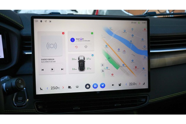 Ebenso nervig ist die Tatsache, dass man sich mit seinem Profil bei jedem Neustart neu anmelden muss. Das stört umso mehr, als das System beim Neustart sowieso schon recht lange braucht, um vollständig hochzufahren. Wenn es denn einmal aktiv ist, überzeugt der große Touchscreen durch messerscharfe Darstellung und schnelle Reaktionszeiten. Auch die Grafiken sind übersichtlich. Unser Testwagen hatte leider weder Apple Car Play noch Android Auto an Bord, was heutzutage bei einem neuen System schon sehr verwundert. Auf Nachfrage wurde uns aber bestätigt, dass dies ab sofort bei den neu ausgelieferten Fahrzeugen verfügbar wäre.
