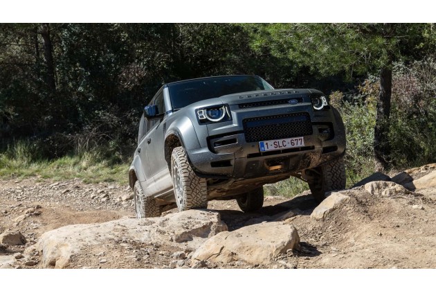 Auch wenn es noch so im Gasfuß kribbelt: Zunächst ein kurzer Rundgang um den neuen Land Rover. Und auch der lohnt sich, denn bei Defender (mittlerweile eine eigene Marke und nicht mehr nur eine Modellreihe) modifizierte man die Karosserie umfassend. Ins Auge fallen vor allem die aggressiven Stoßfänger, die darüber hinaus zusammen mit der erhöhten Bodenfreiheit auch einen größeren Böschungswinkel erlauben.