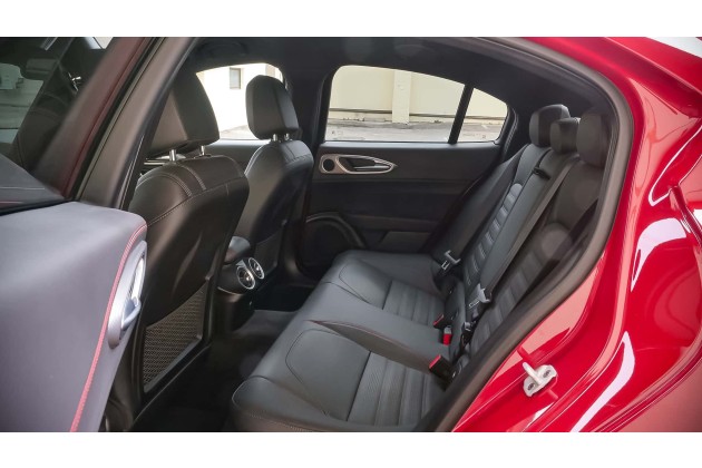 Sitzen zwei größere Menschen direkt hintereinander kann es für den Hünen im Fond durchaus etwas angespannt zugehen. Für Familien mit zwei Kindern geht das Platzangebot aber klar. Das Kofferraumvolumen beträgt 480 Liter, kann durch umklappen der Rückbank vergrößert werden. Die Ladeluke ist recht klein und ganz generell sollte klar sein: Wenn Sie Platz brauchen, machen Sie einen Bogen um dieses Auto oder kaufen sie sich einen Stelvio.