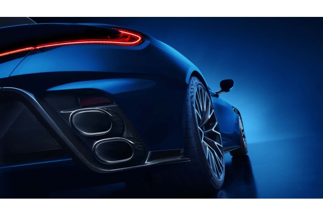 Am Heck setzt Aston Martin auf einen festen Spoiler, einen neu geformten Diffusor und vier übereinander angeordnete Endrohre aus Edelstahl. Optional ist eine Titan-Abgasanlage erhältlich, die 11,7 kg leichter ist und den Klangpegel um 1,5 dB steigert.