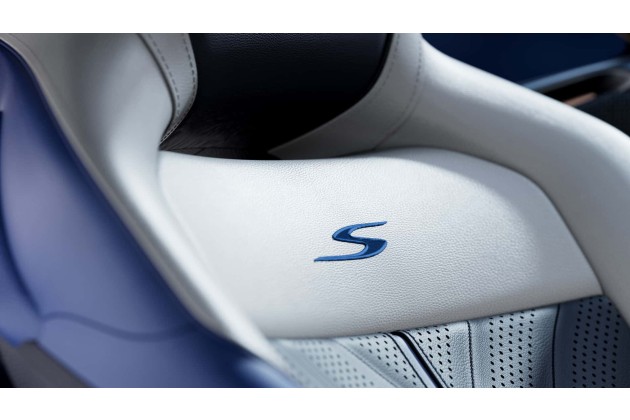 Im Innenraum betont ein roter, gerändelter Metall-Drehknopf für die Fahrmodi die sportliche Ausrichtung. Passend dazu trägt auch das äußere S-Emblem diese Farbe. Das Interieur ist in drei Konfigurationen erhältlich und kombiniert feines Leder mit Alcantara.